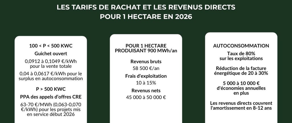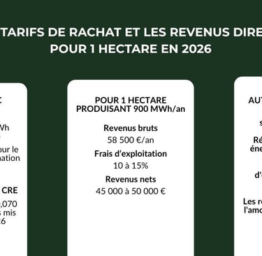 Les tarifs de rachat et revenus directs en 2026